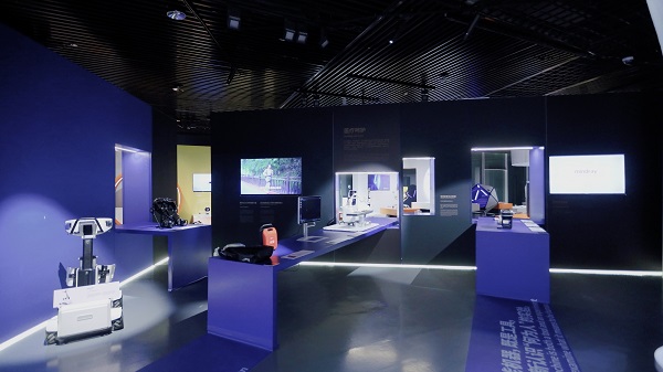 在这一板块,强脑科技智能仿生手成为焦点:通过捕获残肢肌电图的肌肉信号,用户能够直观控制手势,脑部无创设计让残障人士有更多选择。傲鲨智能的增程动力外骨骼机器人凭借Float360™浮动髋关节和智能算法,支持深蹲、骑行及多模式行走,并可精准响应复杂地形;云深处科技的山猫M20轮足机器人结合轮式与腿足设计,兼顾高速移动与越障能力;迈瑞医疗智能急救方案通过模块化工具包整合心电图机、超声等设备,实现数据互联和院前救治;程天科技EasyGo无源外骨骼则采用仿生肌腱弹性储能机制,为步行障碍群体提供零负担助力;乐奇智能眼镜49g的轻若无物,将全球最小MicroLED光机与双目波导技术藏于方寸之间,让AI助理如影随形,这些作品不仅展示了科技在医疗、康复和辅助领域的应用,也向观众提出社会议题:智能不再只是硅基生命的象征,而将迈向人机混合智能体的全新时代。