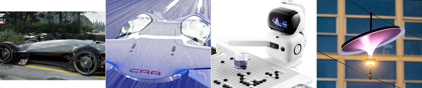 展品包括来自中国美术学院的“探源之旅”水下飞船,结合生物仿生设计,利用海水中的氢能源来产生动力;风能概念跑车通过轮毂内置风力发电机实现续航提升,设计兼顾空气动力效率与自然和谐感;来自荷兰的向日仪模块化太阳能灯链可自主旋转寻找最佳光照,为城市提供绿色照明;商汤科技的元萝卜AI下棋机器人结合视觉与机械臂技术,支持远程对弈,多样化棋力等级满足不同用户需求。